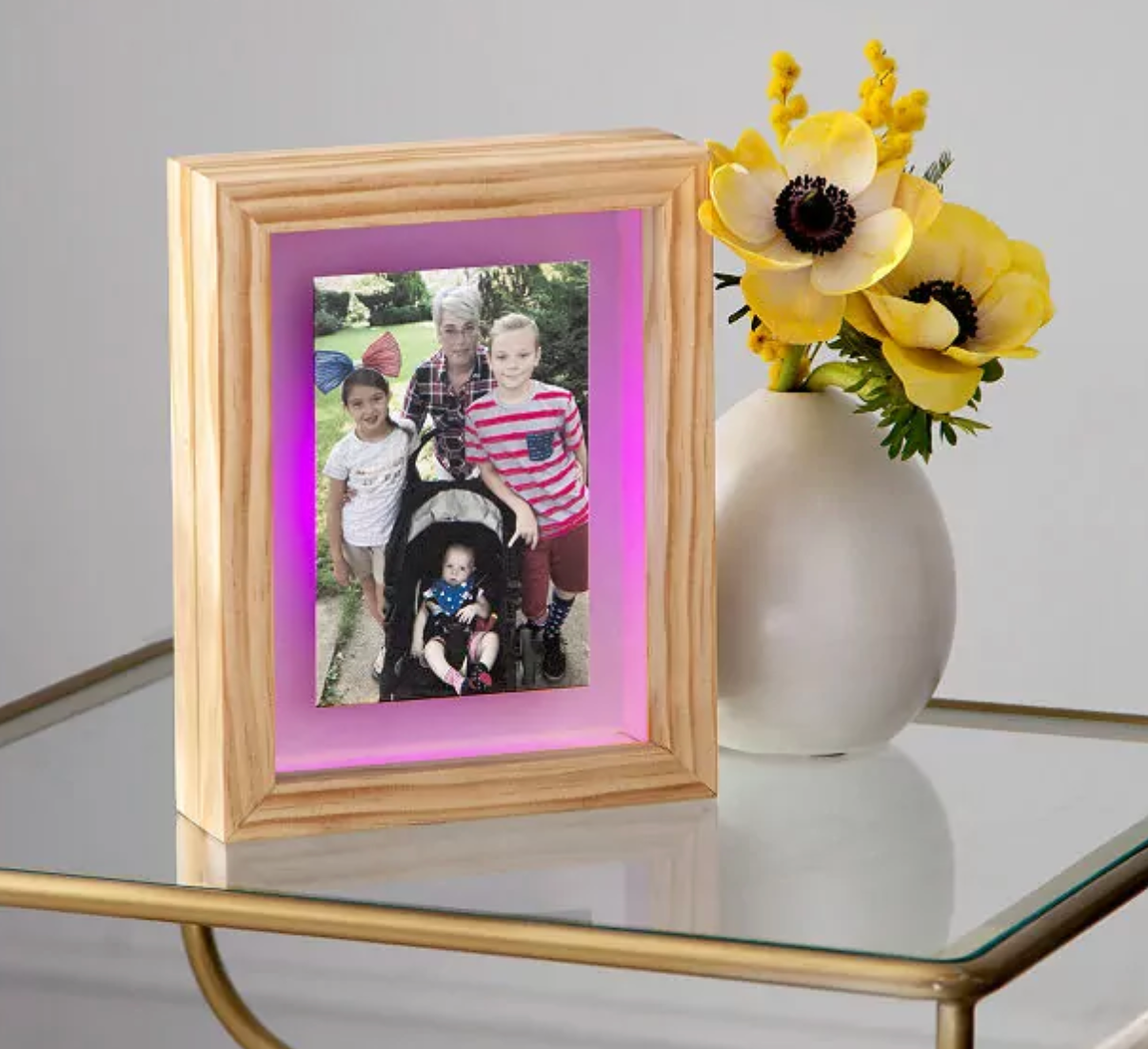With this frame, you can let your long distance partner, friend or family know that you're thinking of them. When you touch your synced up frame, it your loved one's frame glows with love.