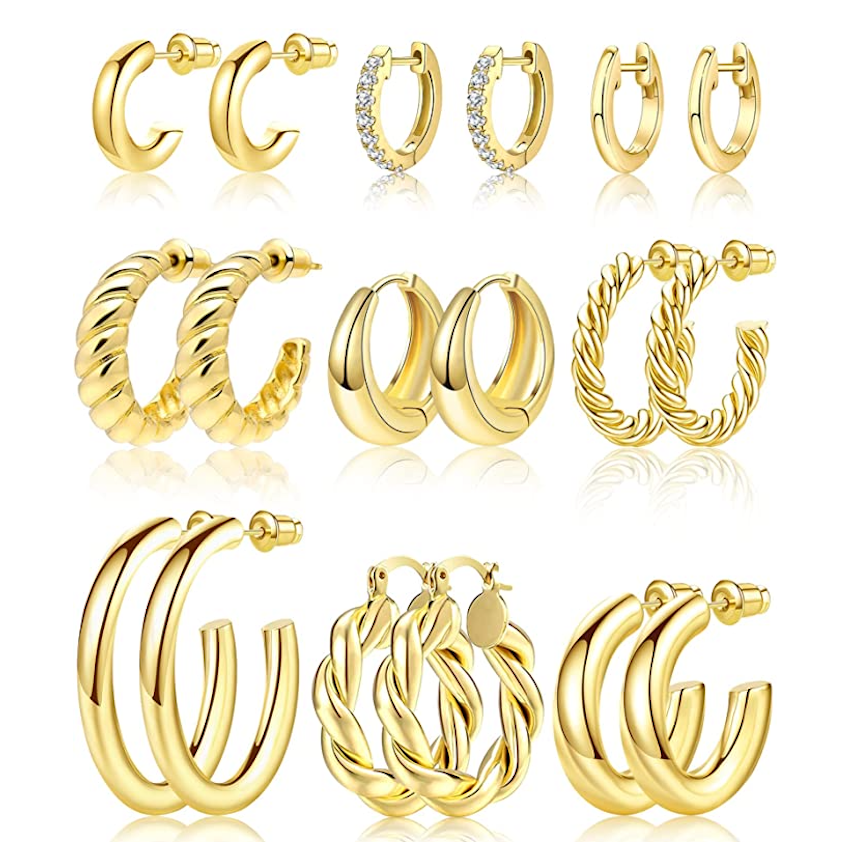 Adoyi 9 Pairs of Gold Hoop Earrings Set