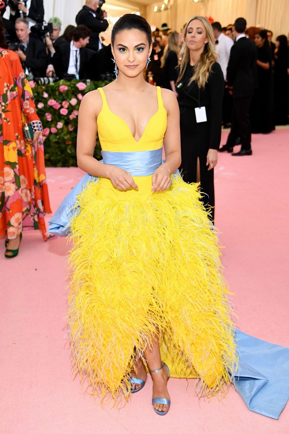 The statement trend took flight on the grand steps of the Met. Kendall and Kylie Jenner opted for bright orange and lavender marabou Versace dresses, while Cardi B took an edgier, dramatic route in a stunning deep red gown by Thom Browne that featured a three-meter, ripple-effect train, adorned with plumage. Riverdale star Camila Mendes looked like she stepped out of a storybook in a Prabal Gurung yellow feathered dress accented with a light blue sash.