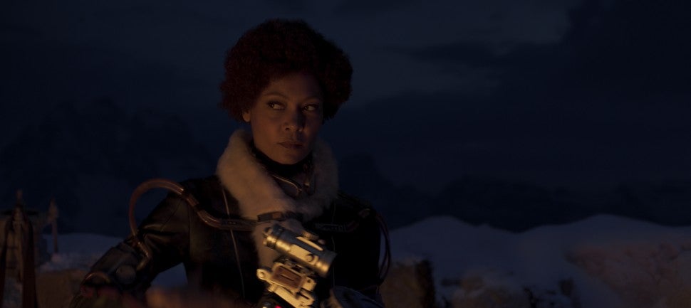 ...At least in the Star Wars universe. We don’t yet know her character’s name, but the Westworld actress is looking as badass as ever, sporting a fur-collared coat and a hefty-looking weapon.