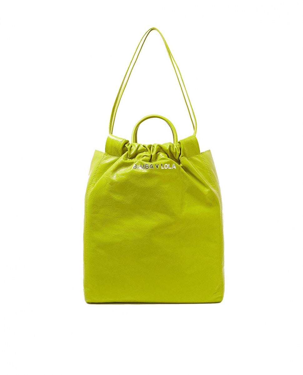 Bimba y Lola Lime Leather Vertical Shopper Bag $519