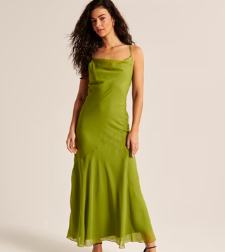 If you're in search for the perfect fall wedding dress, this slim-fitting maxi dress features a cowl neck detail and a floaty skirt for a chic look.