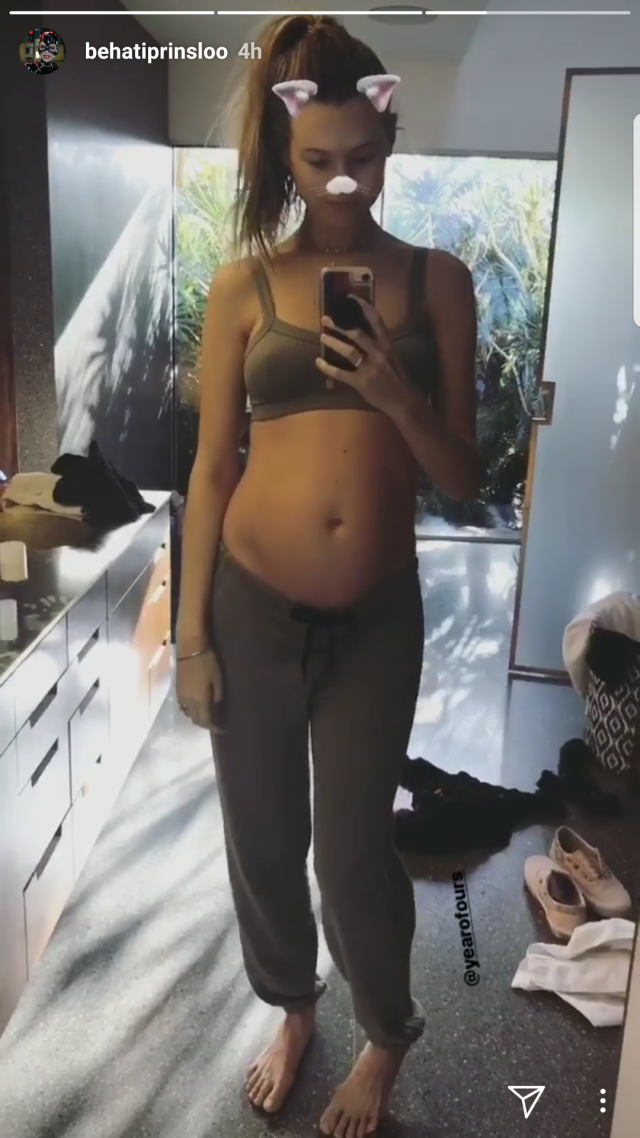 And on Saturday morning, Prinsloo showed off her growing baby bump in a sports bra and sweat pants.