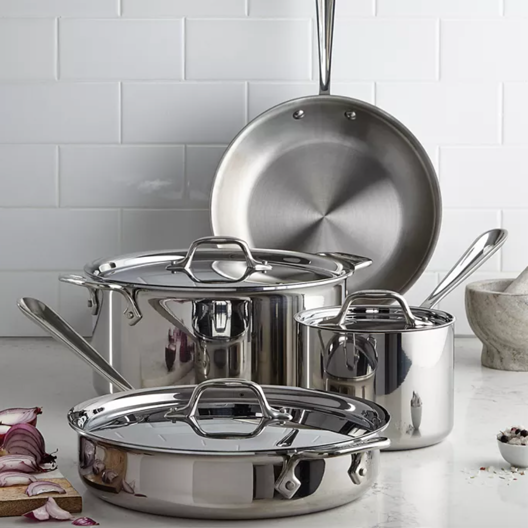 All-Clad D3 Stainless Everyday, 7 Piece Pots and Pans Cookware Set