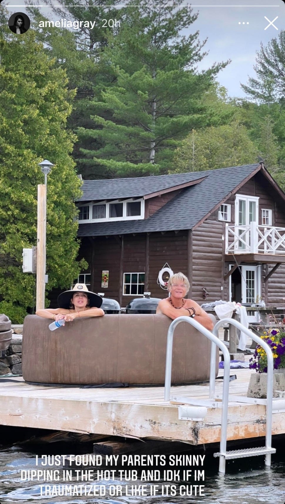 "I just found my parents skinny dipping in the hot tub and idk if I'm traumatized or like if it's cute," she jokingly captioned the photo of the two stars.