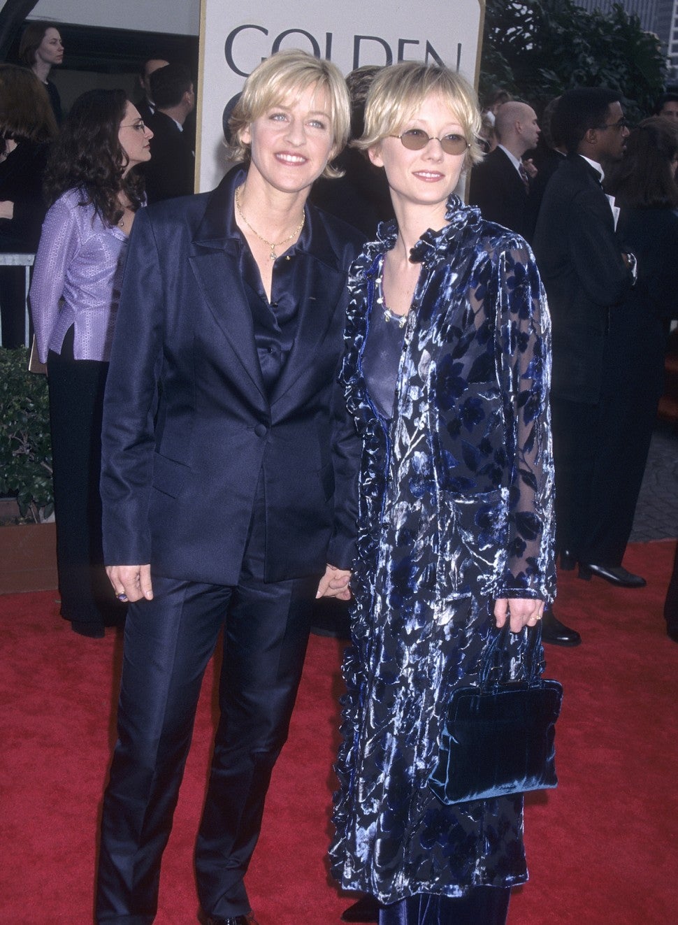 In one of her recent TikTok videos. Heche hilariously reviewed her "most iconic fashion looks" from over the years, including one of her and ex-girlfriend Ellen DeGeneres -- which inspired her to share an interesting tidbit about their relationship. The photo shows the two color-coordinated at the Golden Globes in 1998, with DeGeneres in a silk navy suit and Heche in a matching dress and sheer duster.