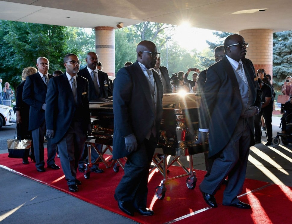 After a three-day public viewing, which featured three outfit changes for the Queen of Soul, it was finally time to lay her to rest. Though the public had been camped out for days, celebrity guests began arriving to the service site around 8:30 a.m. ET.