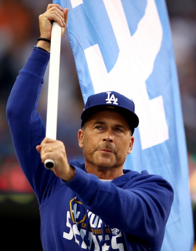 Also whipping around the flag for the team was Rob Lowe, decked out in head-to-toe blue.