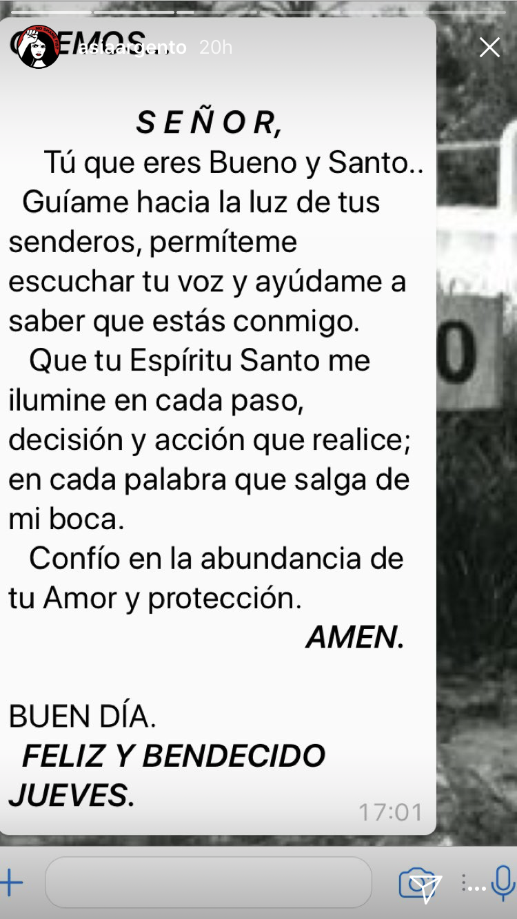 In a third shot, Argento shared a prayer written in Spanish, asking for enlightenment and guidance. "I trust in the abundance of your love," reads a line from the prayer.