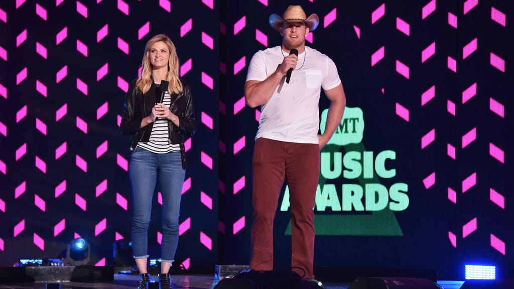 Blake Shelton, Jason Aldean, Chris Stapleton, Keith Urban and more gathered at Bridgestone Arena in Nashville, Tennessee to find out who would take home the most fan-voted trophies as Erin Andrews and J.J. Watt co-hosted the star-studded event.