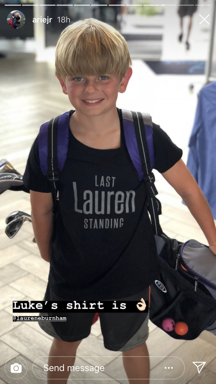 The groom-to-be also revealed the couple’s wedding hashtag, with Burnham’s younger brother, Luke, modeling a t-shirt. On one side the shirt reads, “Last Lauren Standing,” likely a reference to the multiple girls named Lauren who frequently appear on The Bachelor. The back of the shirt says, “sArienotsArie,” a play on the phrase, “sorry not sorry.”