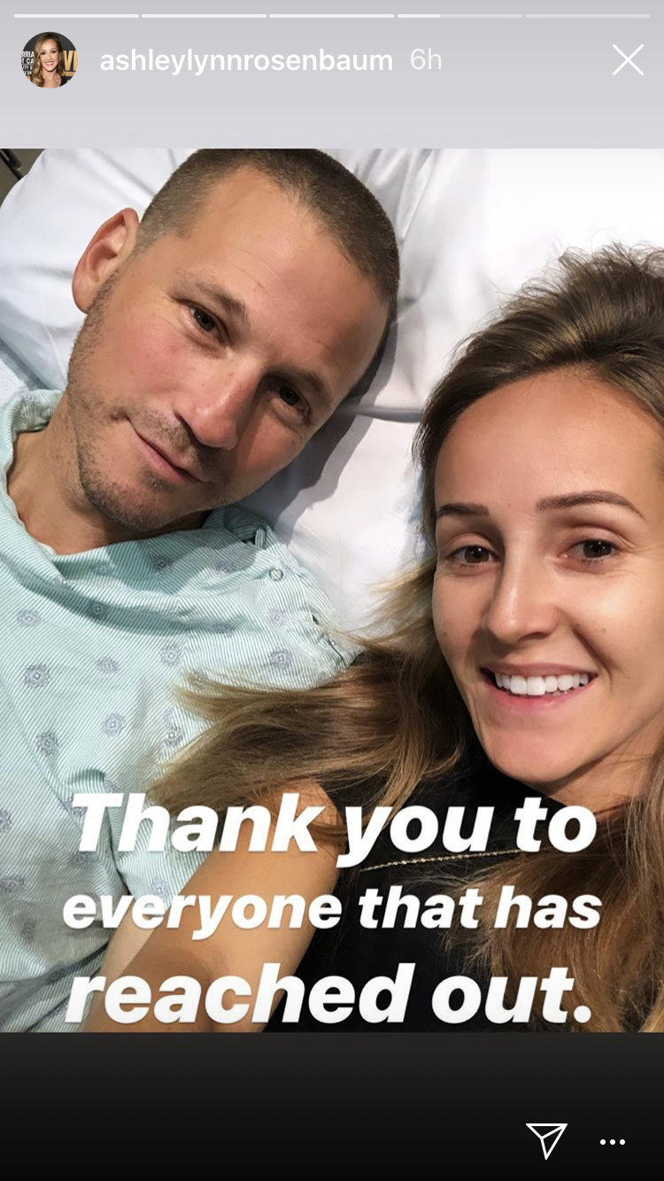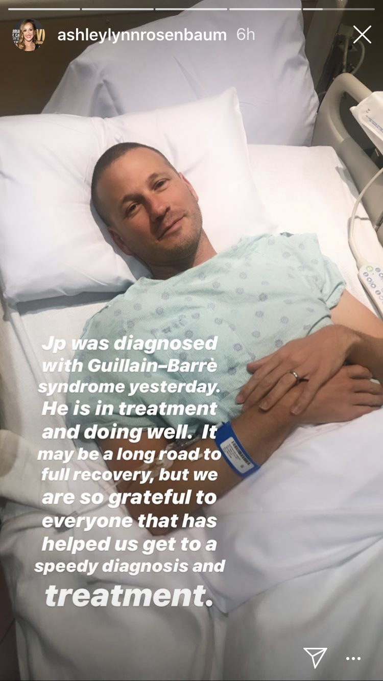 "JP was diagnosed with Guillain-Barré syndrome yesterday," Ashley posted alongside a photo of her husband lying in a hospital bed. "He is in treatment and doing well. It may be a long road to full recovery, but we are so grateful to everyone that has helped us get to a speedy diagnosis and treatment."
