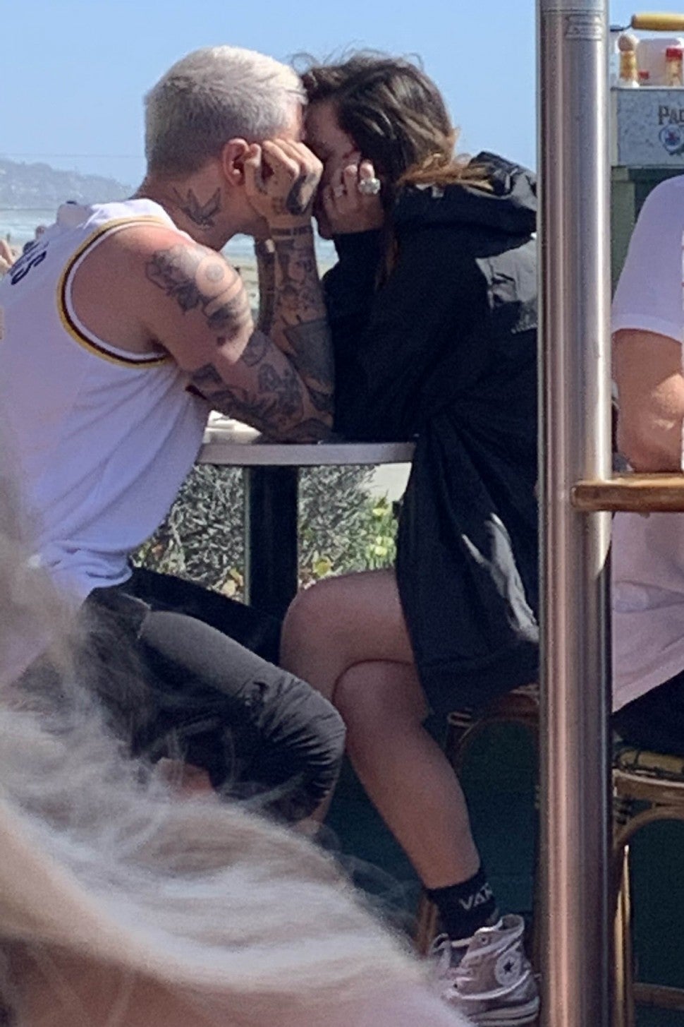Thorne, 21, was dressed casually in a black windbreaker and a pair a converse as she leaned over a table for a little PDA with 25-year-old Mascolo, who part of the duo Benji & Fede. She revealed on Monday that she and Mod Sun -- who were in an open relationship -- had gone their separate ways after over a year together; she split from her girlfriend, YouTube star Tana Mongeau, in February.