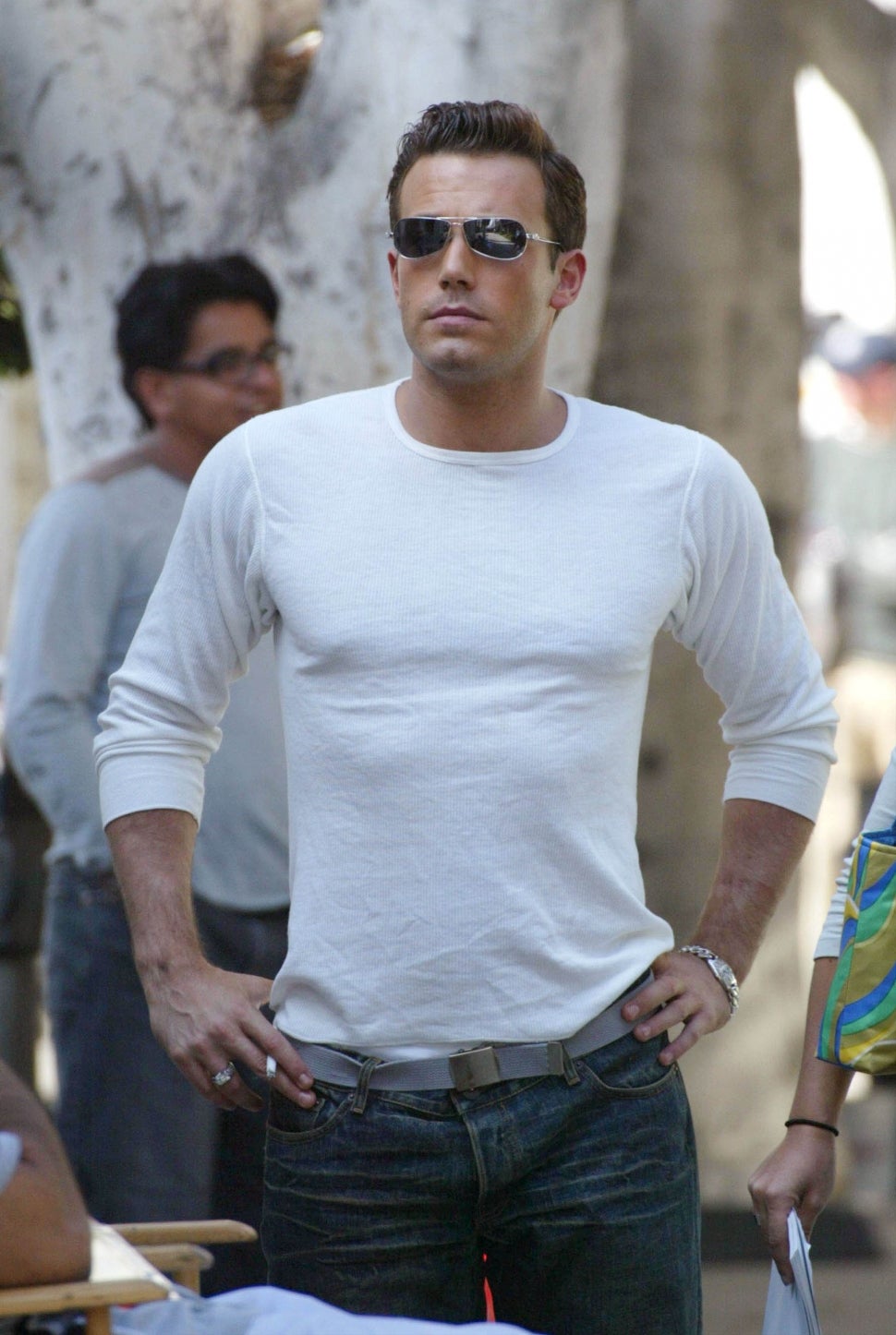 In photos taken on Sunday, Affleck is wearing a T-shirt and sports the distinctive silver watch on his left wrist. Some fans immediately noted on Twitter that the watch appears to be the same one Lopez is shown buying and giving him in the 2002 video. Affleck starred in Lopez's infamous "Jenny From the Block" video, which focused on the paparazzi's intense interest in their relationship at the time.