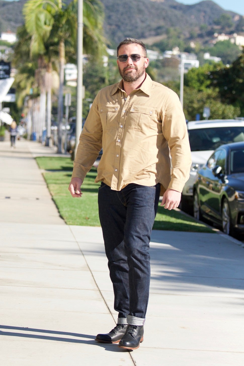 The Justice League star appeared easy-going and friendly while walking into a church service on Sunday in the Pacific Palisades neighborhood of L.A., where he lives. He cracked a smile for onlookers while wearing black boots, jeans and a tan button-down for the service.