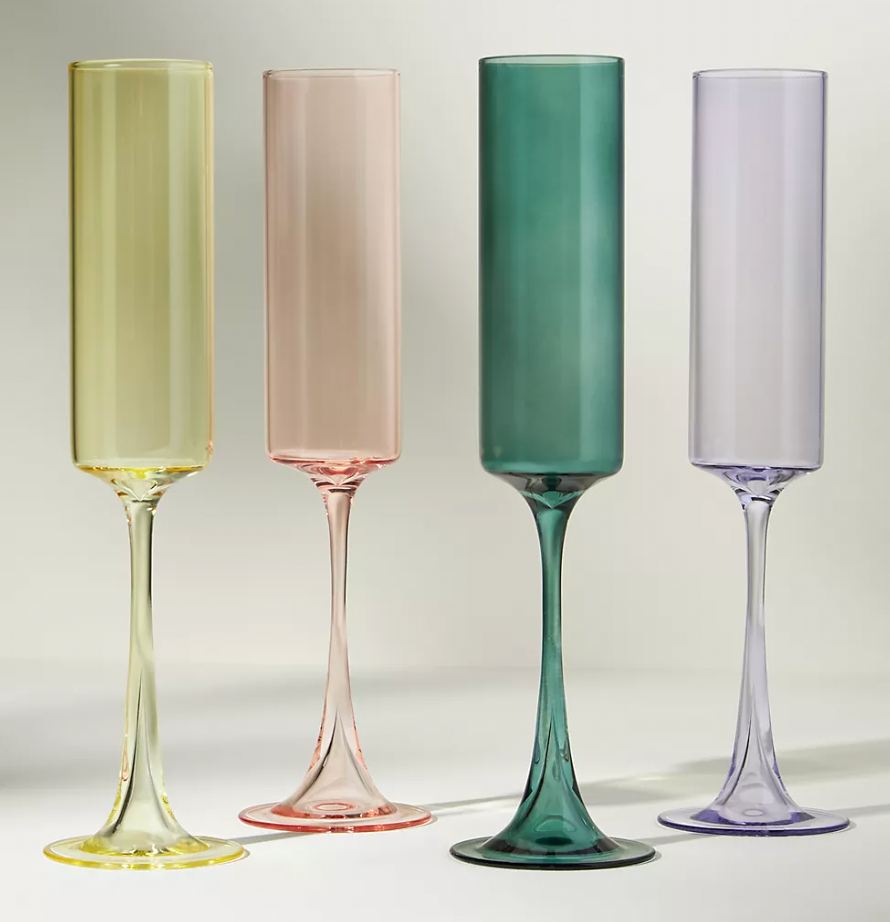 Champagne toasts taste even better sipped out of these multicolored flutes.
