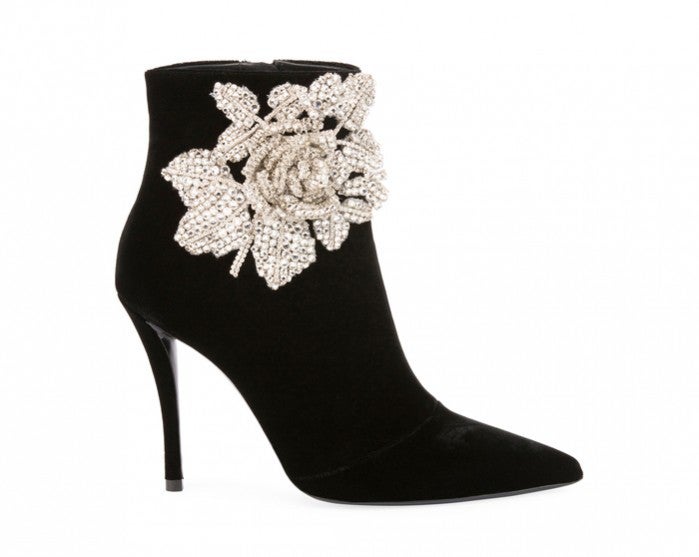 She outfitted the ensemble with $5,100 black Roger Vivier Rose Strass velvet booties featuring a crystal-embellished rose feature, and a matching black leather clutch with jewel detailing from the same designer.
