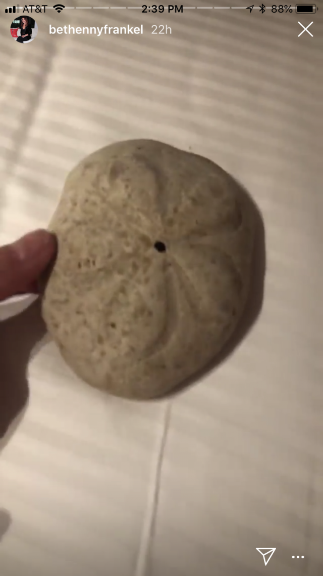 In one video, Frankel shared that she found a sand dollar on the beach, something rare for the area and a reminder of her reported fiance.