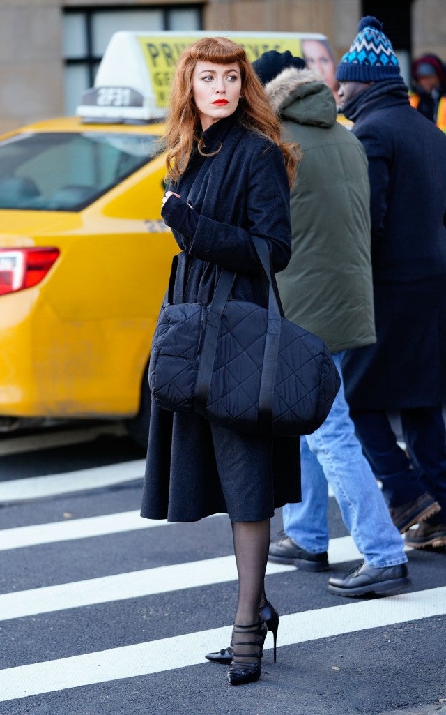 She revived her character’s brunette pixie cut on Sunday, showing off the short style with a bright red lip in the form of an Instagram Boomerang. Lively, who was pictured wearing a demure black trench coat and fingerless gloves, included a lips emoji alongside the hashtag, "#TheRhythmSectionMovie."