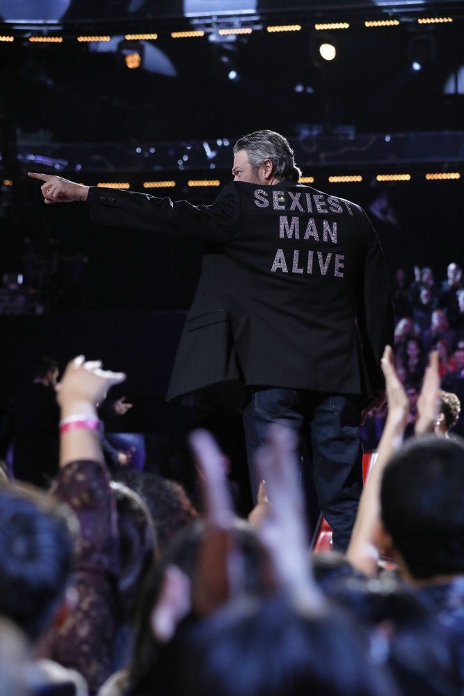 The statement jacket may have also been a dig at his haters, who popped up in droves after Shelton was named Sexiest Man Alive last month by People.