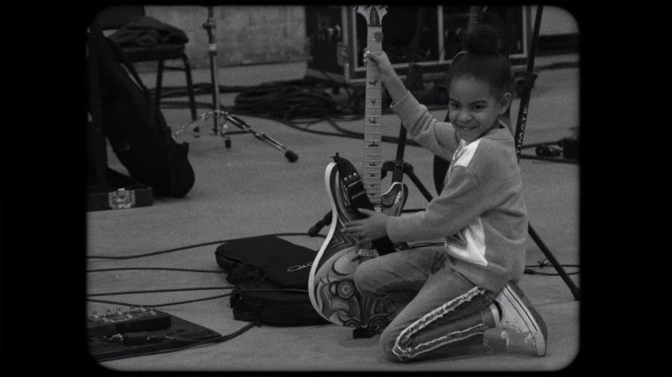 Throughout the doc, which follows the lead-up to and culmination of Beyonce's historic Coachella performance last April, Blue is seen at her mom's rehearsals, where she rehearsed with the dancers and played guitar.