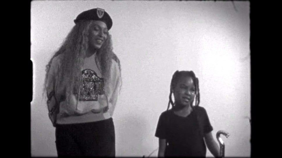 In the sweet black-and-white clip, Beyonce leans down to whisper in Blue's ear before the now-7-year-old shows off her impressive pipes that are reminiscent of her iconic mother.