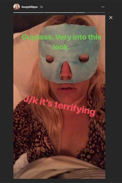 She then posted a photo on her Instagram Stories, showing her in bed wearing a blue mask over the top half of her face.