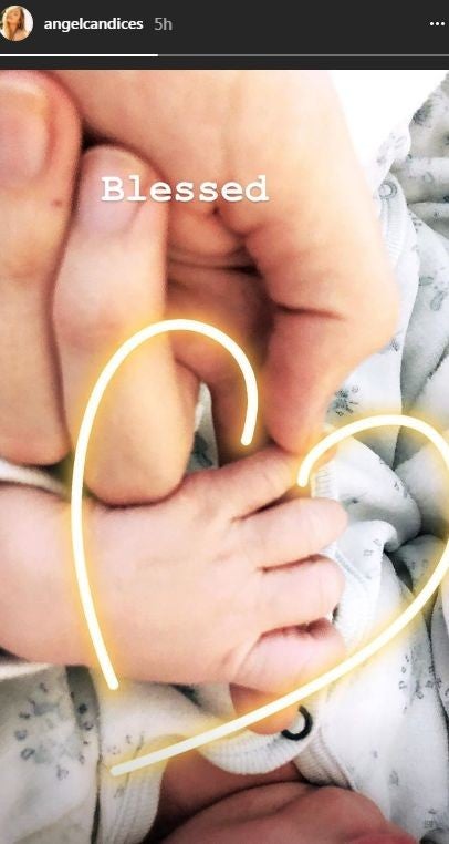 "Blessed," she wrote over the image, which showed the baby boy grasping onto her finger.