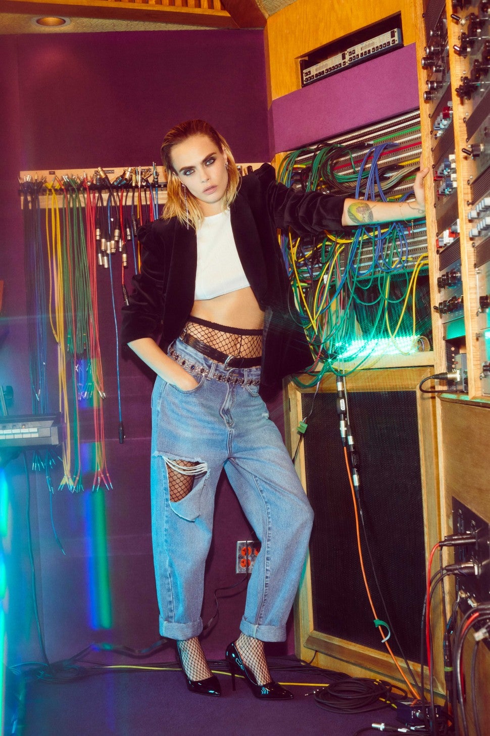 Staying true to the theme, the campaign was shot at the Jimi Hendrix-founded Electric Lady Studios in New York City. Delevingne effortlessly embodies cool, rocking smoky eye makeup and slicked-back hair.