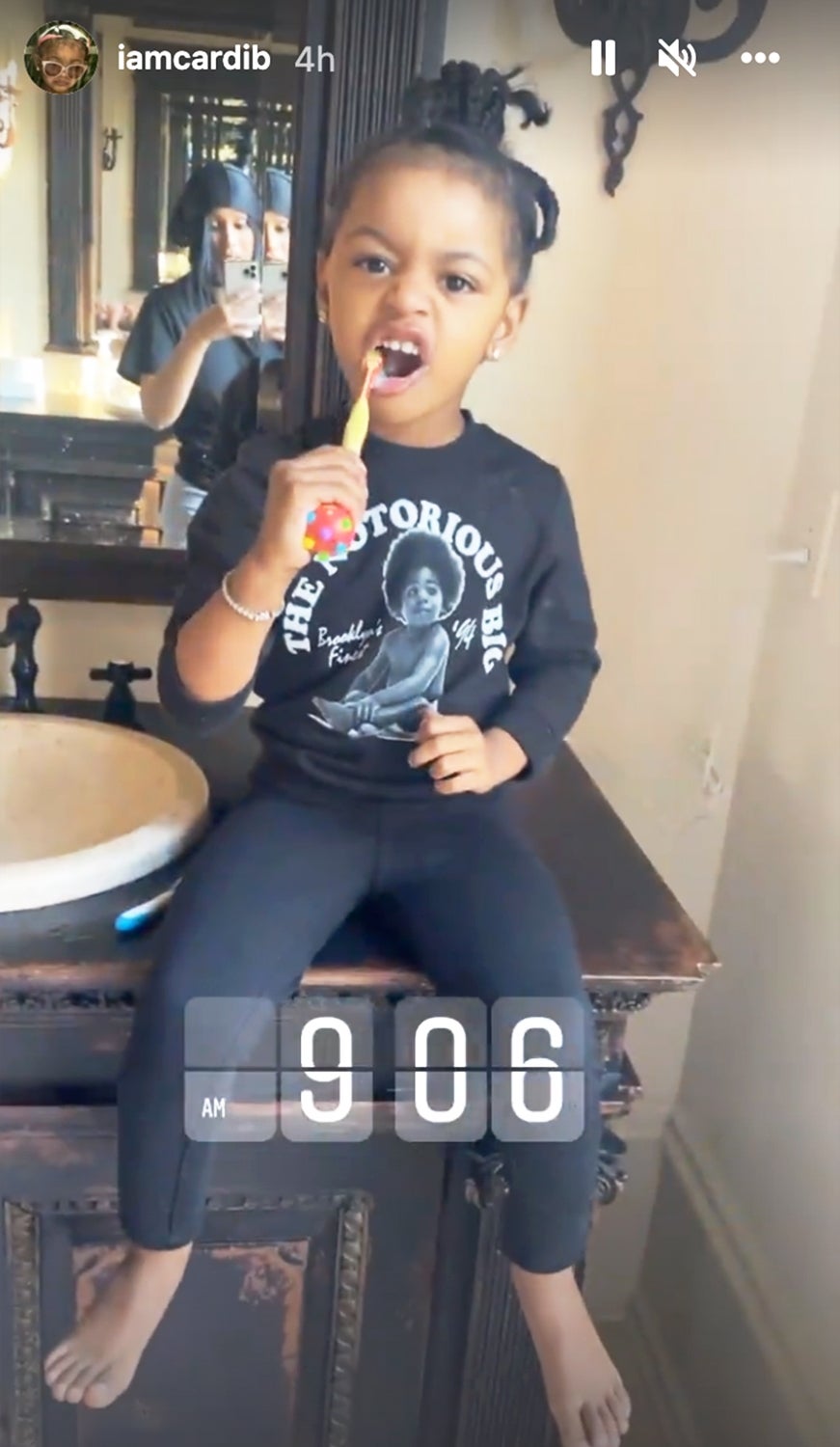 After the teeth brushing, Cardi's morning got busier than expected and became too much for her Stories. “Sorry, can’t do more Insta stories,” she wrote on a blank slide. “It gets busy quick. NEED BOTH MY HANDS.”