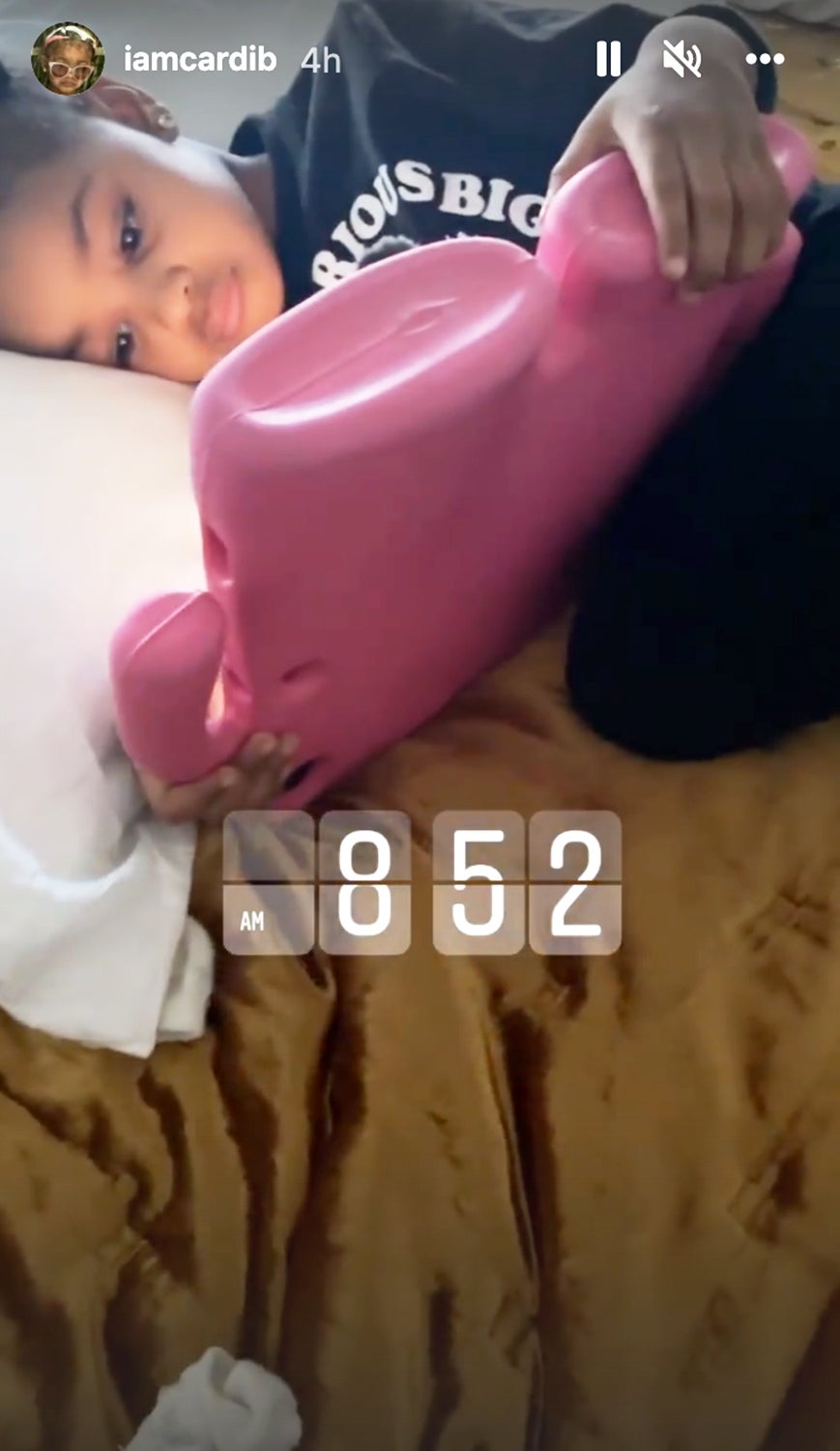 Cardi and her baby weren’t alone for long. At 8:52 a.m., “earlier than she expected,” her and Offset’s 3-year-old daughter, Kulture, and Offset’s 6-year-old daughter, Kaelea, were up and on iPads. It was then time for Cardi to go into extra mommy mode.