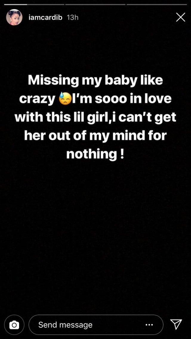 The post came just a few hours after the new mom revealed via Instagram Stories that she was missing her baby "like crazy."