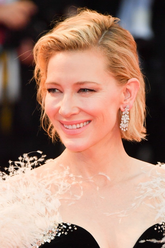 Letting all the attention go to her dress, Blanchett had her short bob in light waves and parted to the side, perfectly showing off her Chopard diamond earrings. She kept her makeup to a minimum, wearing light iridescent eye shadow with a nude lip and mascara.