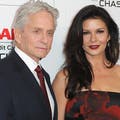 Zeta-Jones also wore eye-catching Lorraine Schwartz emerald earrings to complete her perfect red carpet look.
