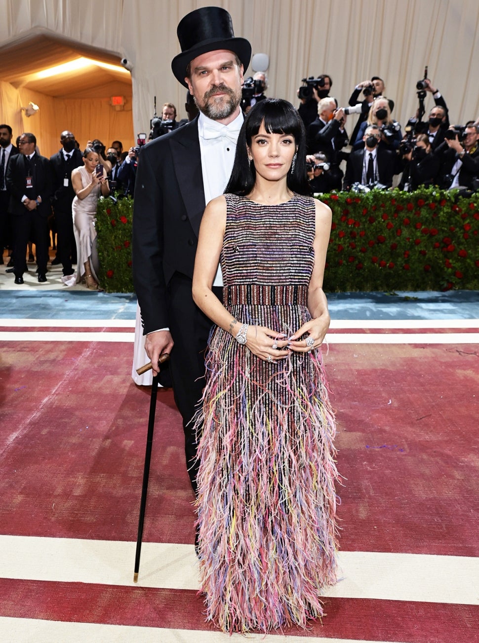 The carpet kicked off in earnest with the splashy arrival of Blake Lively and Ryan Reynolds. Lively pulled off a striking wardrobe transformation on the red carpet itself, revealing a copper and patina colored ensemble modeled after the New York City skyline, while Reynolds kicked off the look a lot of guys wore for the evening -- traditional and elegant tuxedo, in the style of America's famous business magnates and robber barons from the turn of the century.