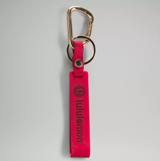 Keep your keys handy with this lucky red silicone keychain that reminds you to "live in the moment."
