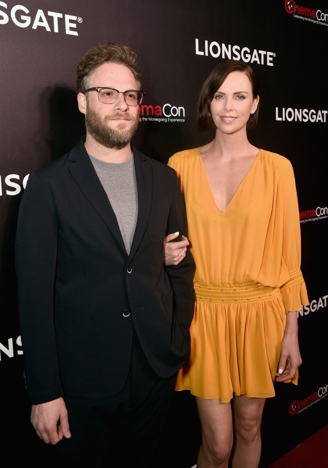 In Long Shot, Rogen plays a man who courts his childhood love and former babysitter, who is now running for President -- but Theron said that in reality, she's been out of the dating pool for so song that courting her would be anything but a "long shot."