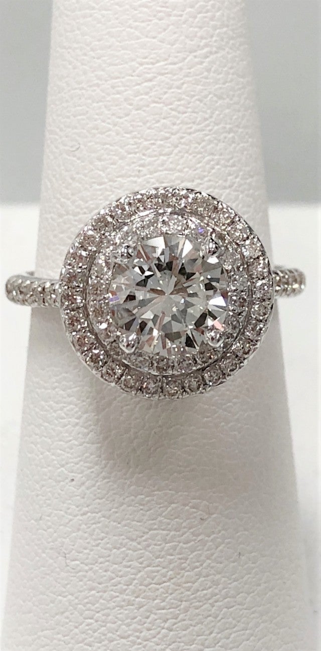 “After looking through many different silhouettes, he selected the perfect 18kt white gold double halo ring on a single band because it echoed the sentimentality of their connection,” Alpert added. “Two lives becoming one with a forever family heirloom at the core being encircled and protected by two beautiful halos."