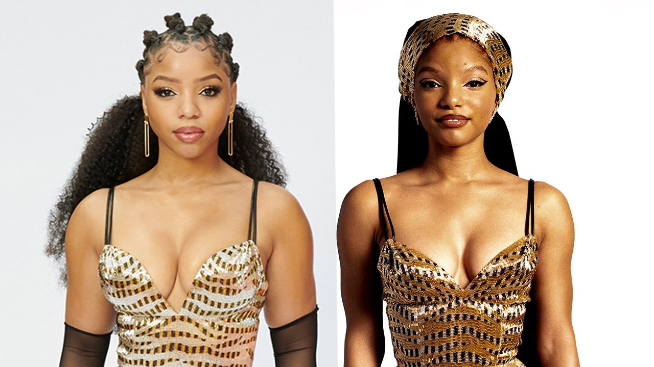 Chloe x Halle are the epitome of chic at the 2021 GRAMMYs. Sisters Chloe and Halle Bailey looked ultra-chic ahead of their red carpet appearances for the in-person/virtual hybrid awards show wearing coordinated custom ensembles by Louis Vuitton.