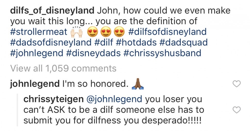 The fun didn't stop there for the family! When they reentered the park, Legend did everything he could to get featured on the DILFS of Disneyland Instagram account. "@mrmikerosenthal and I are submitting this to @dilfs_of_disneyland," he captioned his first pic.