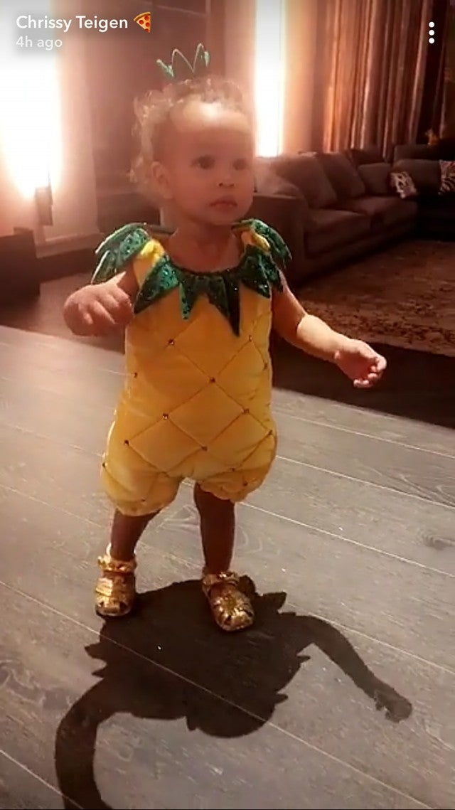 And a pineapple makes three! Chrissy Teigen and John Legend went for an adorable family-themed Halloween look on Tuesday night.