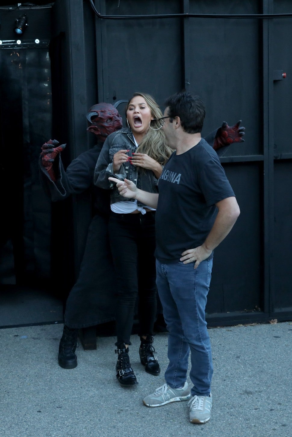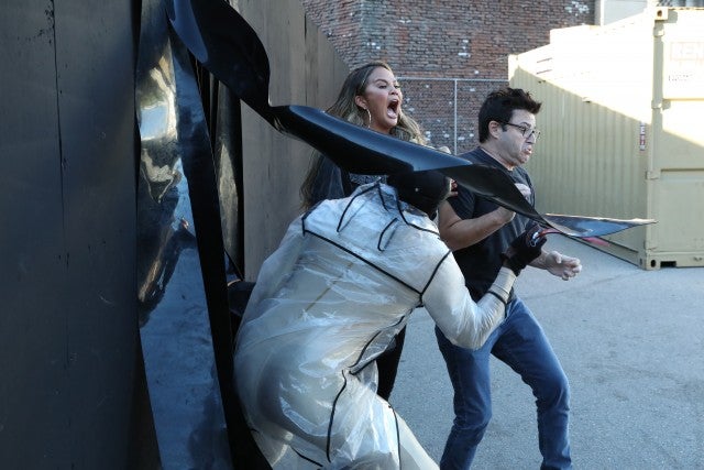 Before they can make it out to safety, Teigen and Lassner encounter a cleaver, what Lassner calls a "f**king aggressive" monster and even witness a fake murder.