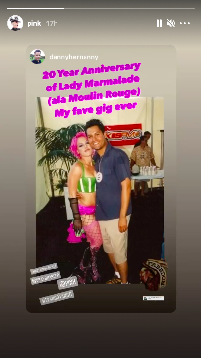 Meanwhile, Pink shared a post celebrating the anniversary of the group's performance of "Lady Marmalade" at the 2001 Wango Tango Concert at Dodger Stadium.