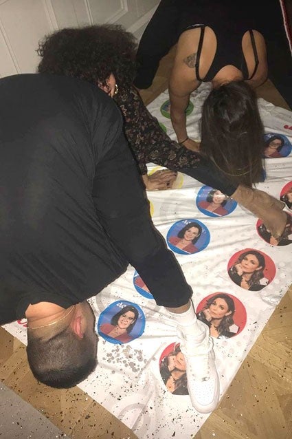 The pop star turned 37 on Monday and celebrated by having a party that included a homemade Twister mat with the faces of Bravo stars. In the photo shared on Aguilera's Instagram story of the game, The Real Housewives of New York City cast members Luann de Lesseps and Bethenny Frankel are featured.