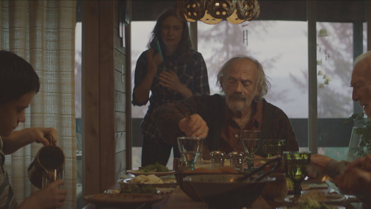 In Boundaries, the upcoming dramedy from director Shana Feste (Country Strong), Vera Farmiga plays Laura, a single mother who is forced to take a road trip with her estranged, pot-dealing dad, Jack Jaconi (played by Christopher Plummer). Along with Laura's son, Henry (Lewis MacDougall), and a pack of stray dogs, the family's trip includes plenty of pit stops, one of which is seen in this exclusive clip of a very eccentric family dinner with quite the main dish.
