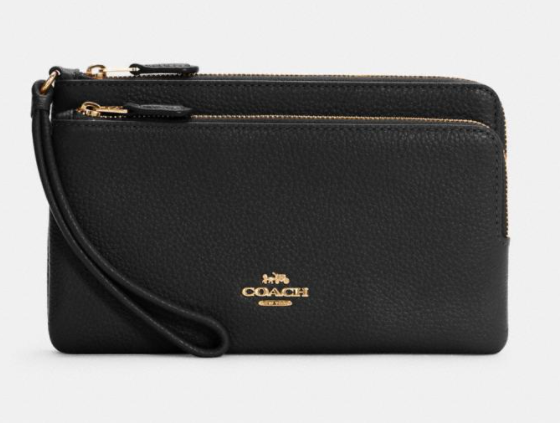 A clutch and wallet in one -- this double zip compartment design has six card slots, a full-length bill pocket, interior pockets and a wrist strap.