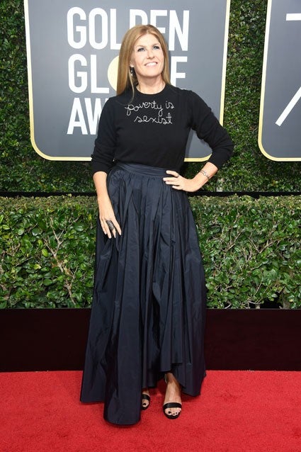 The sweater garnered some attention on Twitter, mainly for its $380 price tag. One person tweeted: "So, I wanted to purchase @conniebritton’s 'poverty is sexist' #GoldenGlobes sweater, but when I looked it up, it costs $380…. is it just me or does that seem ironic?"