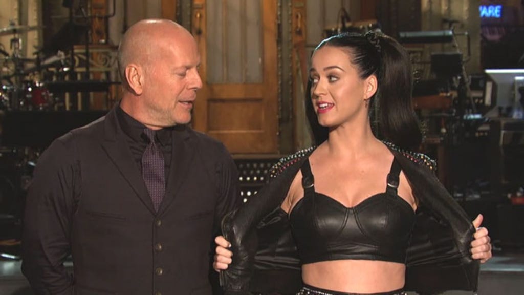 Bruce Willis is hosting Saturday Night Live this week with musical guest Katy Perry, and in the latest promo for the highly anticipated episode, Katy gives Bruce her number one hosting tip -- showing some serious skin!