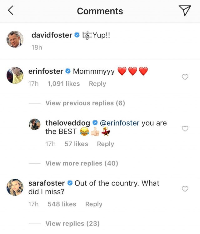 In the comments below the pic, David's daughter Erin -- who is one year older than her dad's new fiancée -- responded to the photo, "Mommmyyy" along with three red heart emojis.
