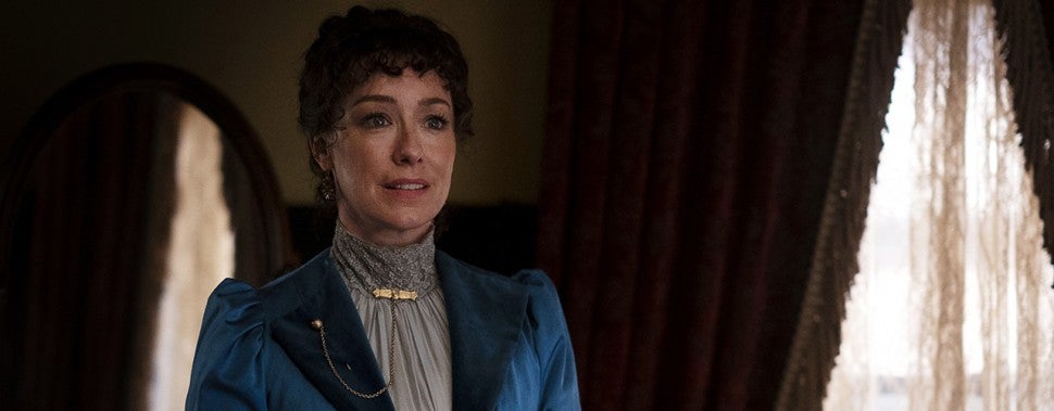 Alma Garret (Molly Parker): The show’s female lead, Parker portrays one of the series’ fictional characters. Garret, whose husband is killed while prospecting, takes ownership of a plot that proves to be flush with gold. Despite initial desires to leave town, Garret stays, forming a business partnership and romance with Bullock. However, she eventually remarries Whitney Ellsworth (Jim Beaver), who is later killed by Hearst. Additionally, she takes in a young female steward after her family is slaughtered outside of town.